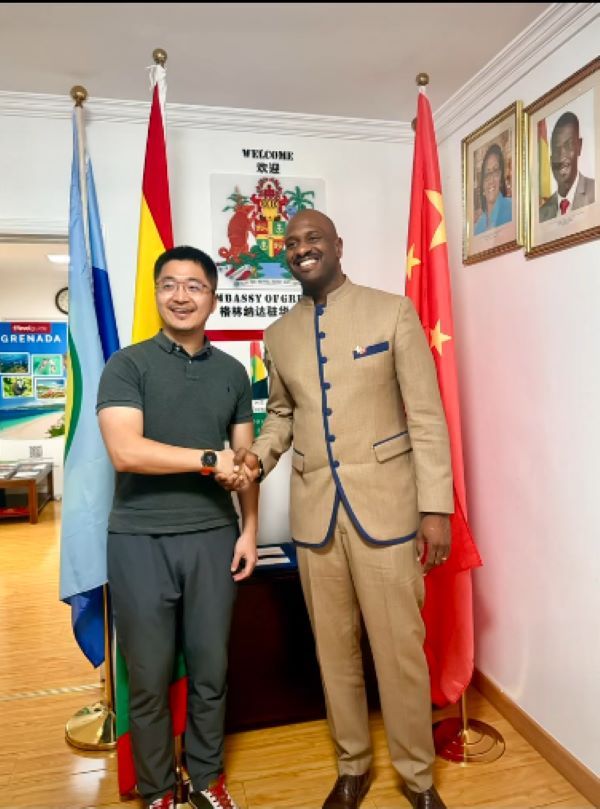 2025年5月9日,中商外贸集团投资部总经理王思聪一行访问了格林纳达驻华大使馆,格林纳达驻华大使Marshall热情会见了王总一行。